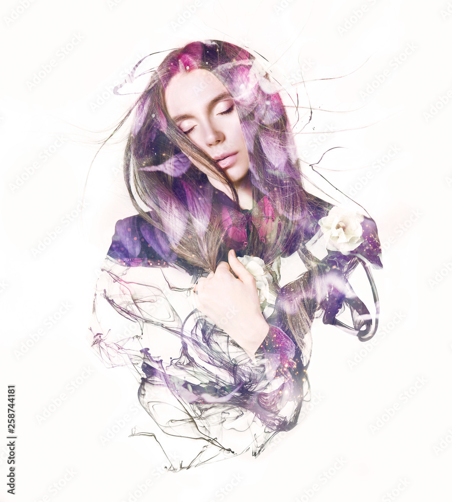Visual Digital Art Fantasy Woman Portrait Double Exposure Effects Beautiful Girl With Closed Eyes Dreaming Sleeping Beauty Concept Loveliness Of Youth And Feminity Stock Photo Adobe Stock